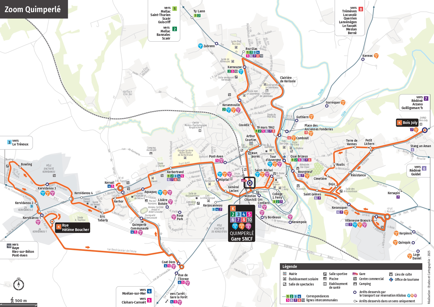 Ce dernier est ajusté afin de mieux couvrir l’ensemble du territoire de Quimperlé et d’offrir un accès direct au centre-ville au plus grand nombre d’habitants quel que soit le quartier de résidence. Il permet en outre de conserver l’objectif initial de fréquence : toutes les 20 minutes en heures de pointe, 30 minutes en milieu de journée.
